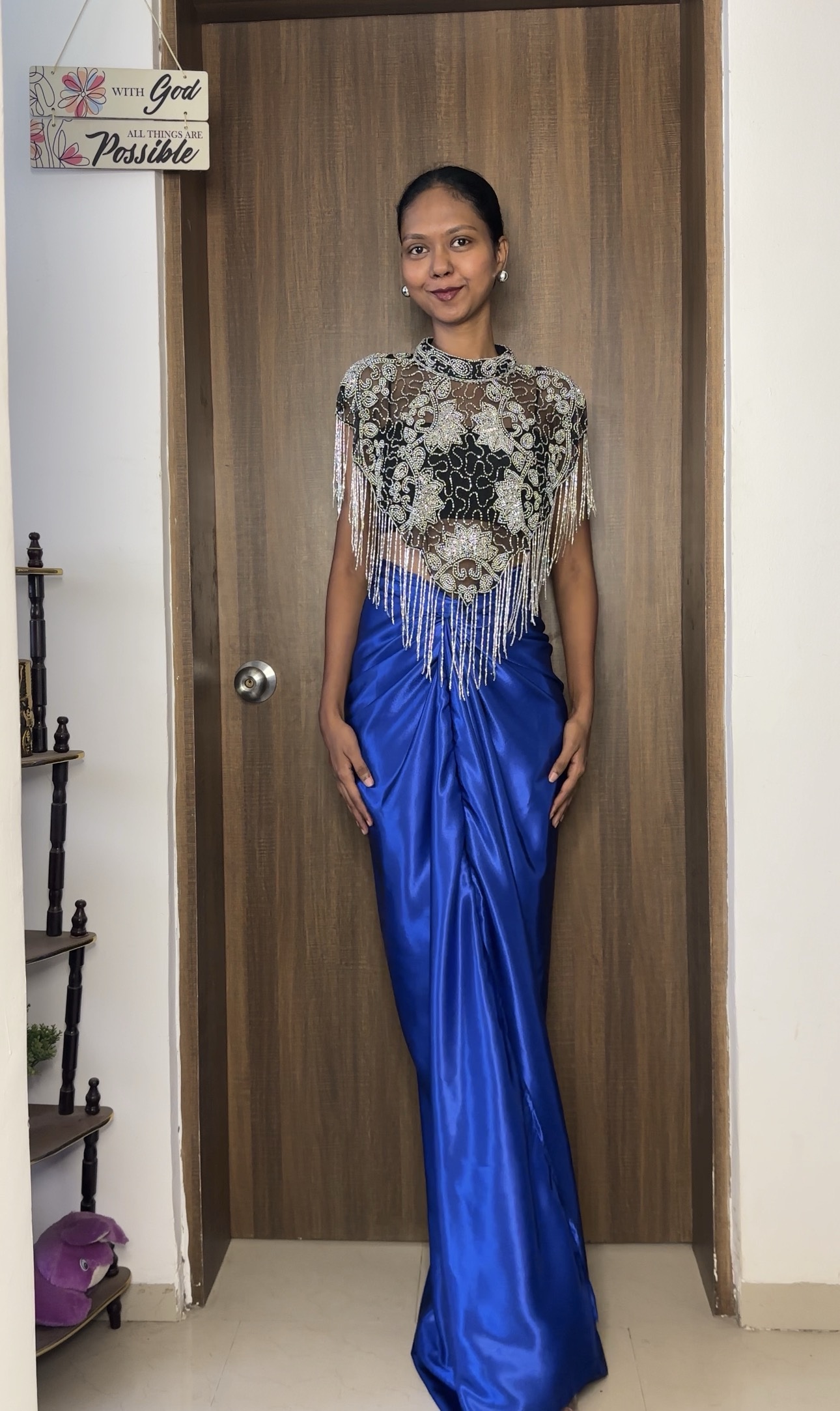 Skin Colour Satin Multiway Long Skirt